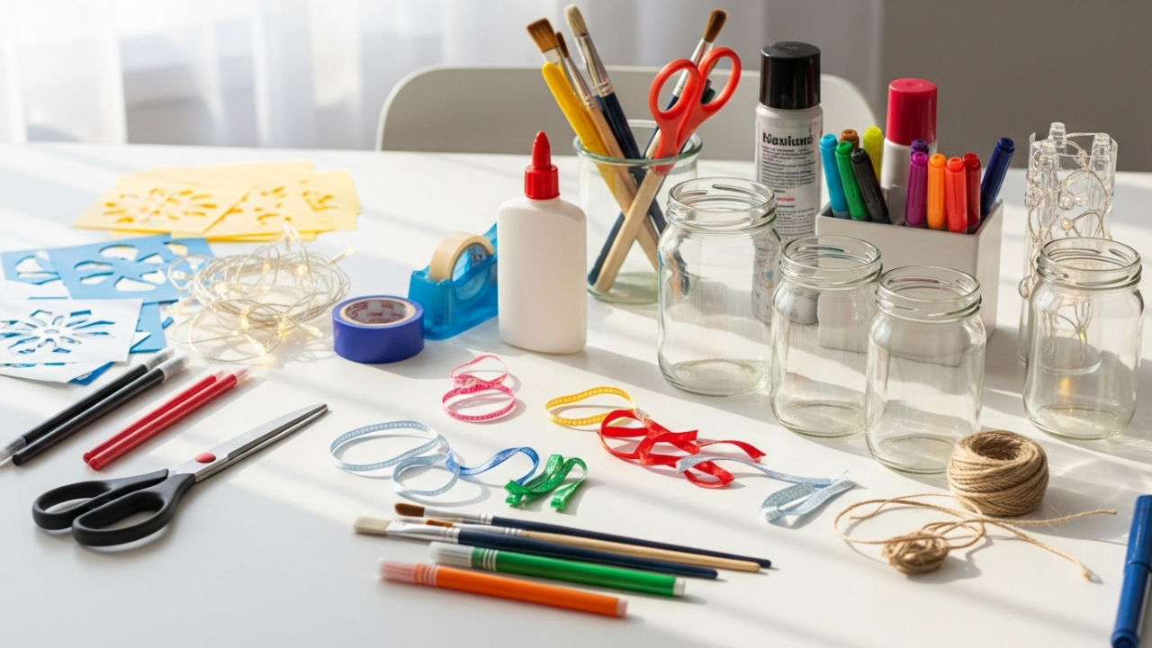 It’s essential for a beginner to keep the tools and materials simple. Having too many supplies can feel overwhelming and discourage trying things out. You can start with just a few jars, some essential paints, and ribbons and select more materials as you become more confident.